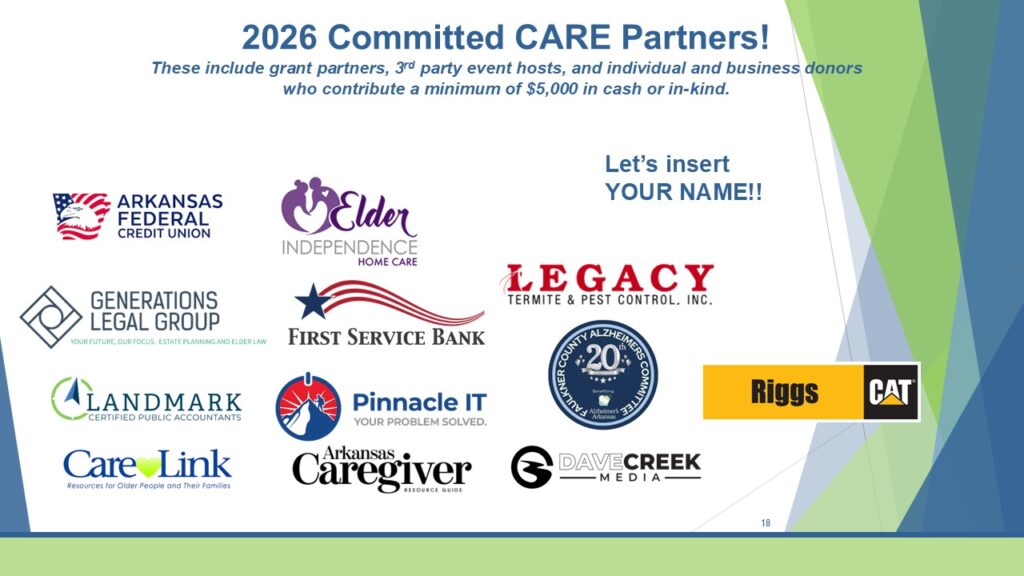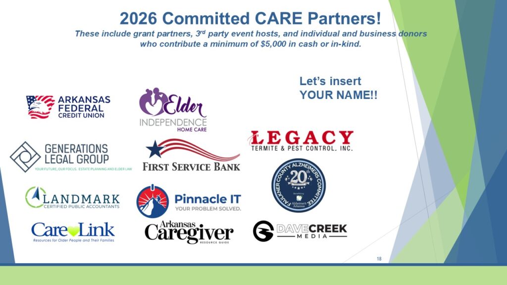 Step onto a path of support, understanding, and empowerment. Join Alzheimer’s Arkansas in the journey to uplift caregivers, transform lives, and advocate for change. Together, we can make a difference.