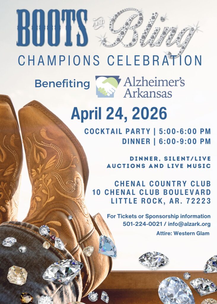Champions Celebration is our premier, annual fundraiser for Alzheimer’s Arkansas! All proceeds raised stay right here in Arkansas to help provide free programs and services to family caregivers caring for those living at home with dementia or other chronic illnesses. The funds raised help us offer educational workshops, respite activities, financial assistance, online resources, podcasting, and so much more.